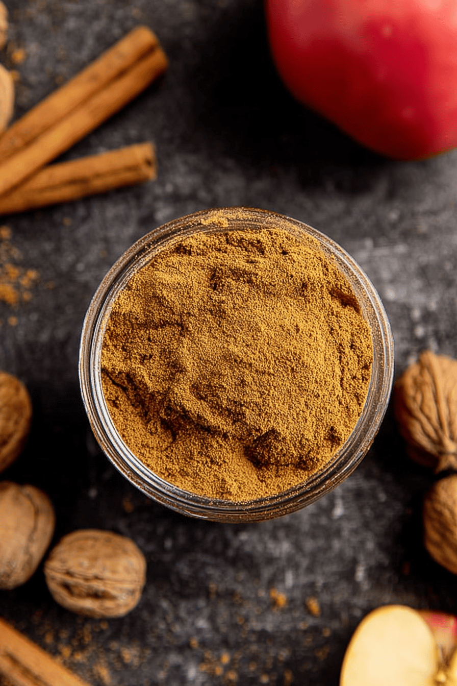 Mistura de especiarias típica para torta de maçã com canela, noz-moscada, cravo, gengibre e cardamomo. Ajustes mínimos em quantidades para equilibrar aroma e sabor, substituição do gengibre por pimenta-da-jamaica para um toque inesperado. Mistura feita para realçar sabor sem dominar a fruta, resultado de várias experiências e testes táteis. Uso da mistura tanto para massas quanto recheios, com dicas para armazenar e conservar o frescor das especiarias. Receita prática, levando em conta variações sazonais e substituições comuns no Brasil.