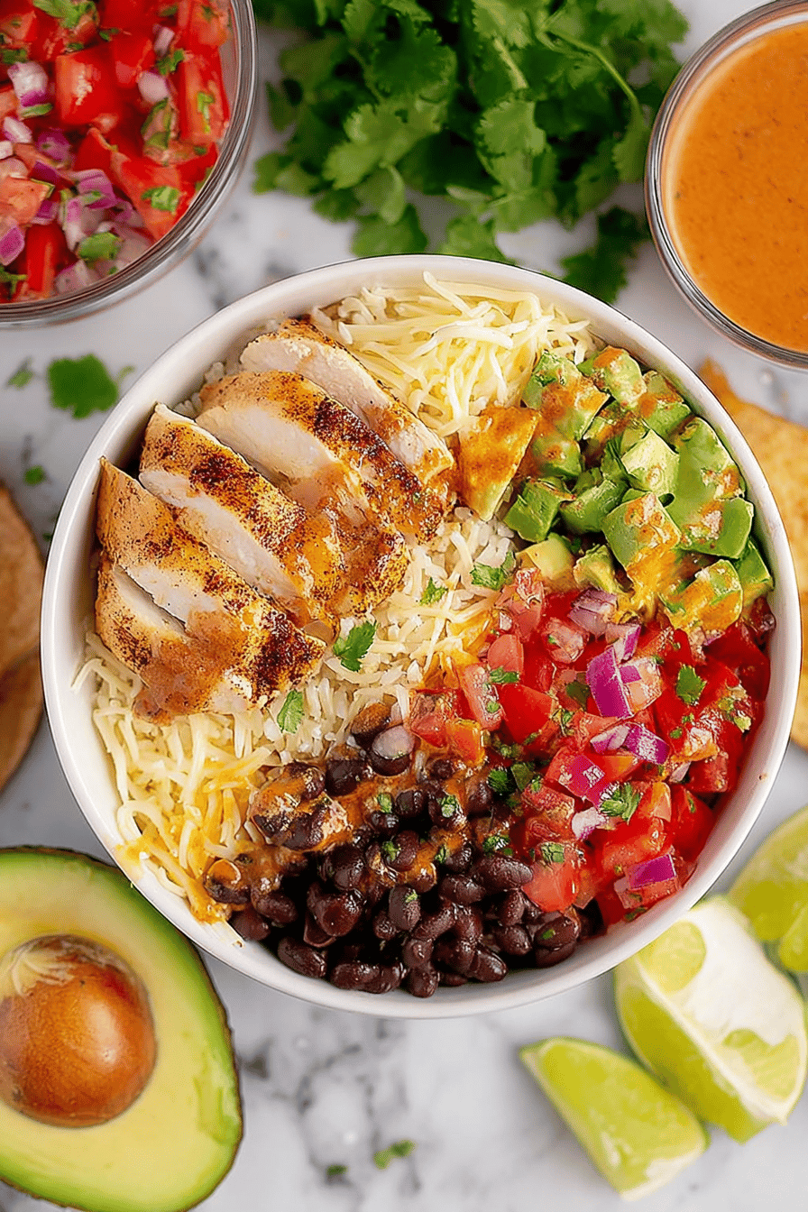Combinação de peito de frango levemente temperado com farinha e chili, refogado até dourar, servido sobre arroz branco soltinho com mix de pimentões, cebola e alho. Finalizado com fatias de abacate, tomate fresco, coentro e um toque agridoce da vinaigrette de mel com chipotle. Versátil e rápida, reverencia sabores mexicanos sem complicação. Ideal para quem já tentou receitas semelhantes e quer um resultado mais prático e cheio de personalidade.