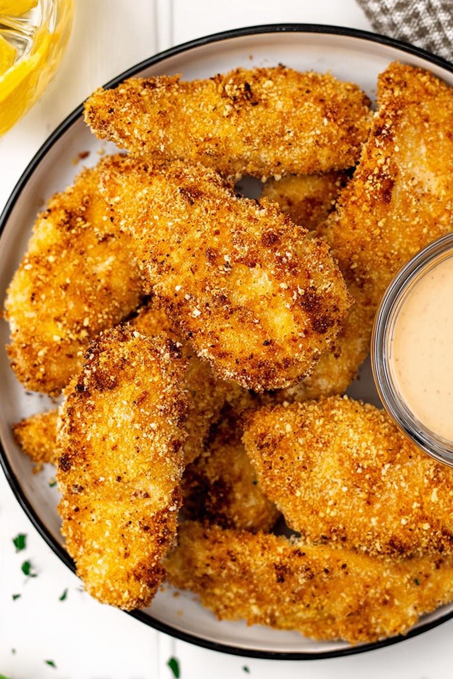 - 💡 Vá devagar ao passar as tiras na farinha. Não pressione demais. A crocância vem do ar que circula, e não da grossura do empanado. Menos pressão mantém a leveza e a crocância na hora de cozinhar.