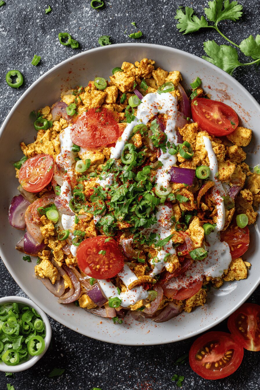 O tofu médio-firme funciona melhor que o firme puro, pois cozinha mais rápido e não deixa o prato pesado; esfarelar com as mãos, jamais usar processador, assim evita pasta. Pimenta serrano é meu substituto favorito para o jalapeño, mas se não tiver, uma dedo-de-moça com sementes também serve. Cuidado com o alho — alho queimado amarga; melhor fogo médio para refogar devagar e o óleo vegetal ajuda a carregar sabor e evitar que queime rápido. Pimentão no lugar do tomate é escolha prática para quem não quer acidez; tomate verde mexicano também funciona, mas aí perdeu a doçura. Use especiarias frescas, pois a páprica fumada perde impacto com embalagem aberta há muito tempo. Erva fresca é essencial; coentro sozinho pode ser pesado, então misturo com hortelã, fica refrescante sem pesar no gosto. Creme vegetal torna o prato mais cremoso para os menos fãs de comida seca, mas pode ser omitido para quem prefere leveza.
