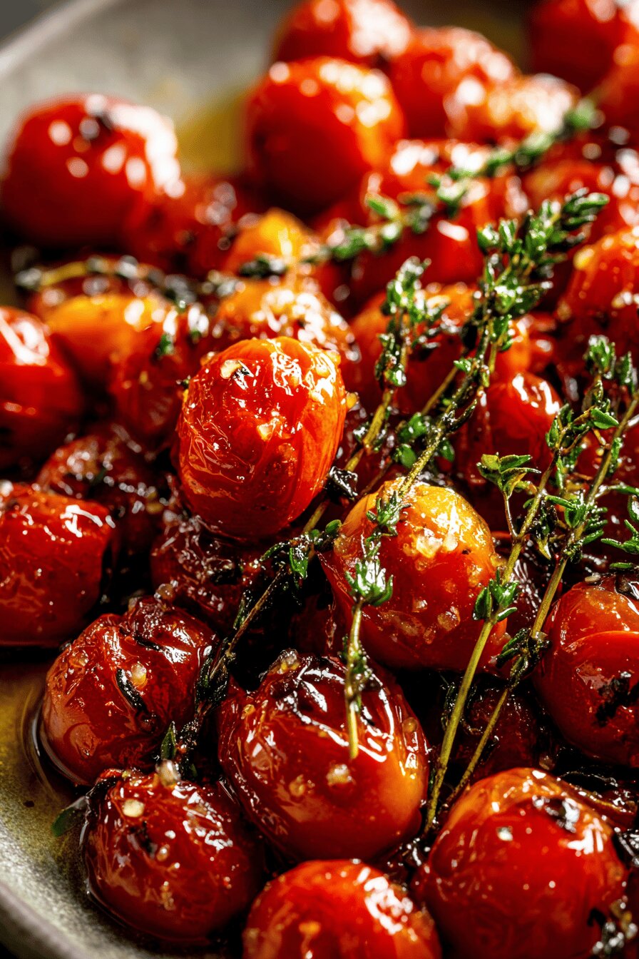 - 💡 Pingar um pouquinho de azeite durante o cozimento é crucial. Não deixe esquentar demais. Se os tomates rachar, é sinal de que está indo bem. Mexa só se necessário. Norteie os tomates, mas não os destrua. Lembre-se: queremos que eles fiquem inteiros.