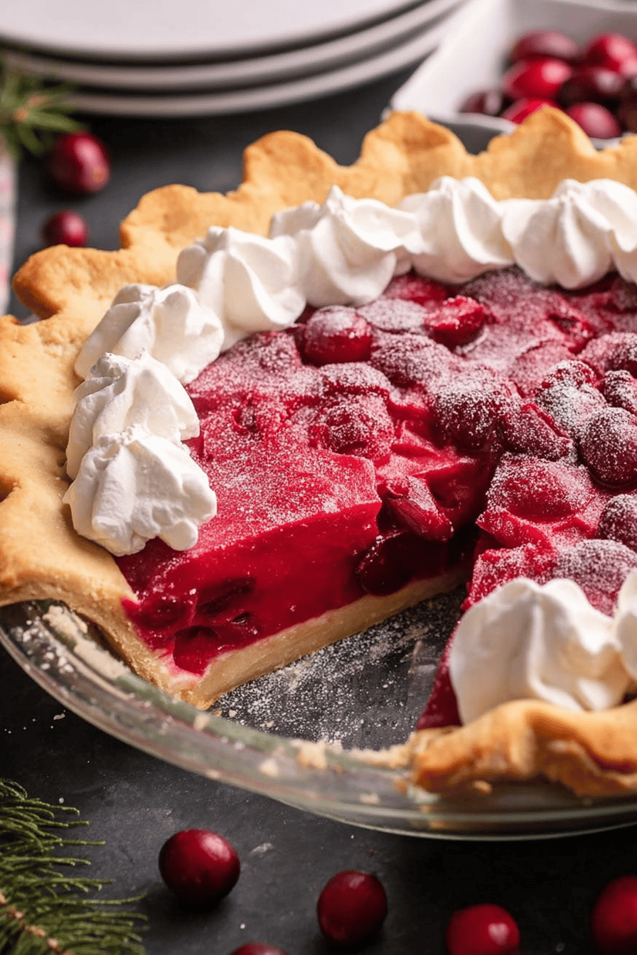 Torta crocante com recheio cremoso de cranberry e creme de coco. Massa pré-assada para evitar encharcar; recheio cozido até as frutas estourarem, liberando todo o sabor ácido e doce. Cremoso com ovo temperado para firmeza sem ressecar, e uma pitada de cardamomo para um toque diferente. Cobertura de creme de coco batido ao invés de chantilly tradicional, garantindo frescor e leveza. Dica: use frutas frescas ou congeladas, o que tiver em casa. Pra conservar: geladeira fechada, boa por 3 dias.