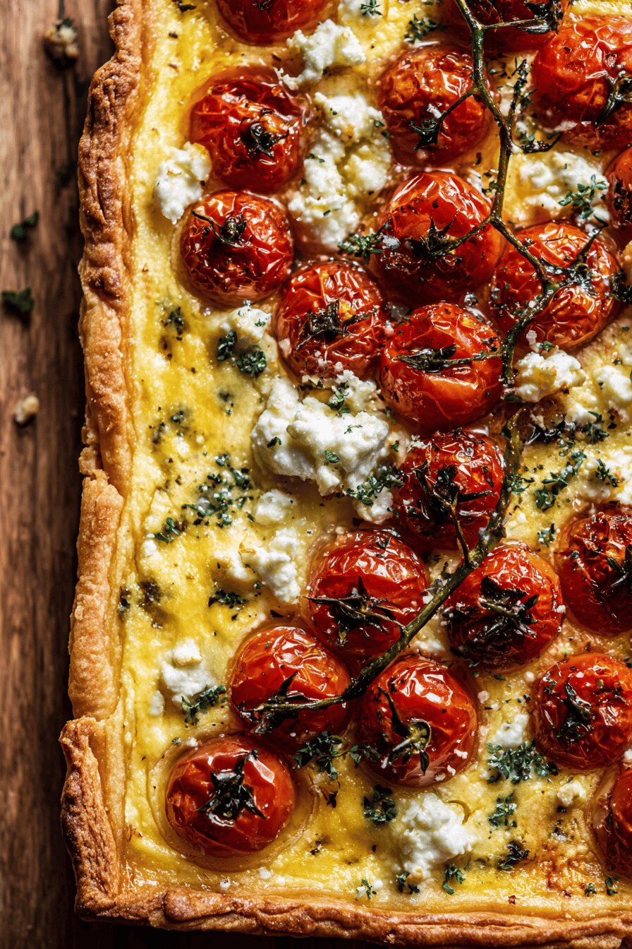 Essa torta salgada aparece despretensiosa, mas surpreende com camadas de sabores. A massa é menos amanteigada que versões tradicionais, o que deixa tudo mais leve, mas ainda crocante. O creme com ovos e creme de leite ganha vida com manjericão e alecrim frescos, outras ervas trocando a famosa ciboulette. Queijo de cabra entra no lugar da feta, trazendo aquele sabor marcante e levemente ácido. Tomates-cereja inteiros por cima dão aquela explosão de suco e cor no prato. Vai bem com uma salada fresca ou para um almoço rápido. Minimalista, mas cheio de personalidade. Dá para variar temperos e queijos ao gosto, sem enjoar nunca.