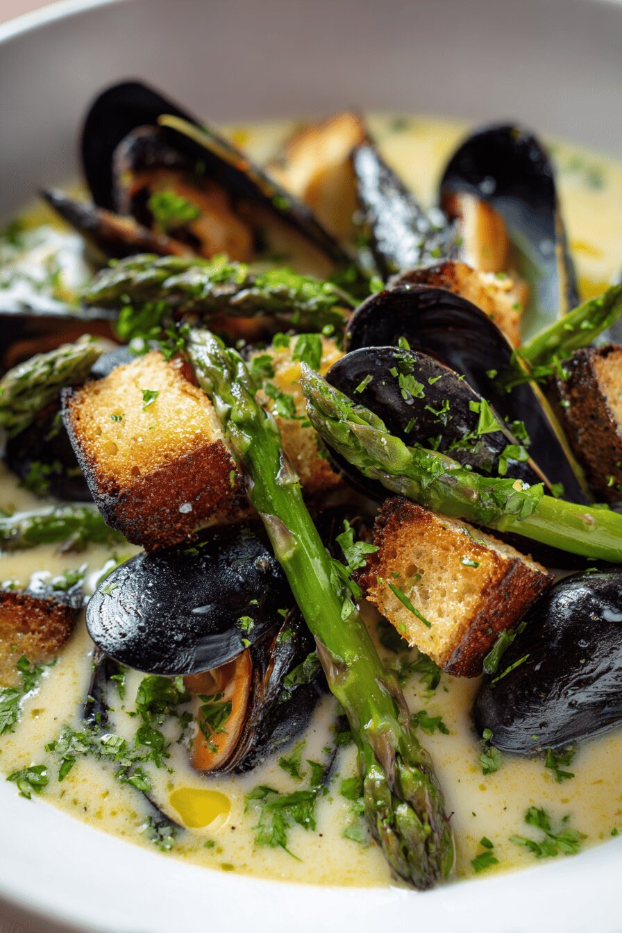 Cozinhar com ingredientes do mar e da terra ao mesmo tempo pode ser um desafio. Misturar a delicadeza do aspargo com a força dos mexilhões, entendendo textura e sabor, demorou algumas tentativas. Descobri que o segredo está em usar o líquido da própria cozedura do marisco para dar base à sopa, junto com a batata-doce que traz doçura e cria aquela textura aveludada. Croûtons de alho têm que ser crocantes, mas sem perder o sabor fresco do azeite e do alho cru — uma dança entre crocante e suave. Acerto o ponto pela cor e aroma, o que acaba virando um ritual prazeroso. Perfeito pra quem gosta de sopas que abraçam sem pesar.