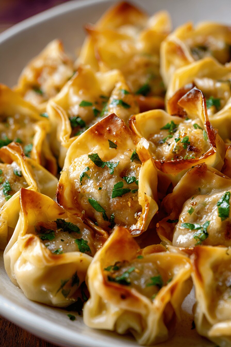 Pacotinhos com carne moída de peru misturada a gengibre fresco e cebolinha. Cobertos por massa fininha própria para won-ton. Recheios temperados com molho shoyu em vez de molho de peixe, para um toque mais suave. Gengibre traz aroma e leveza. A preparação inclui congelamento opcional após montagem, facilitando o armazenamento. Podem ser fritos ou cozidos em água fervente. Textura crocante por fora e suculenta dentro. Serve como entrada, tira-gosto ou acompanhamento em refeições asiáticas caseiras.