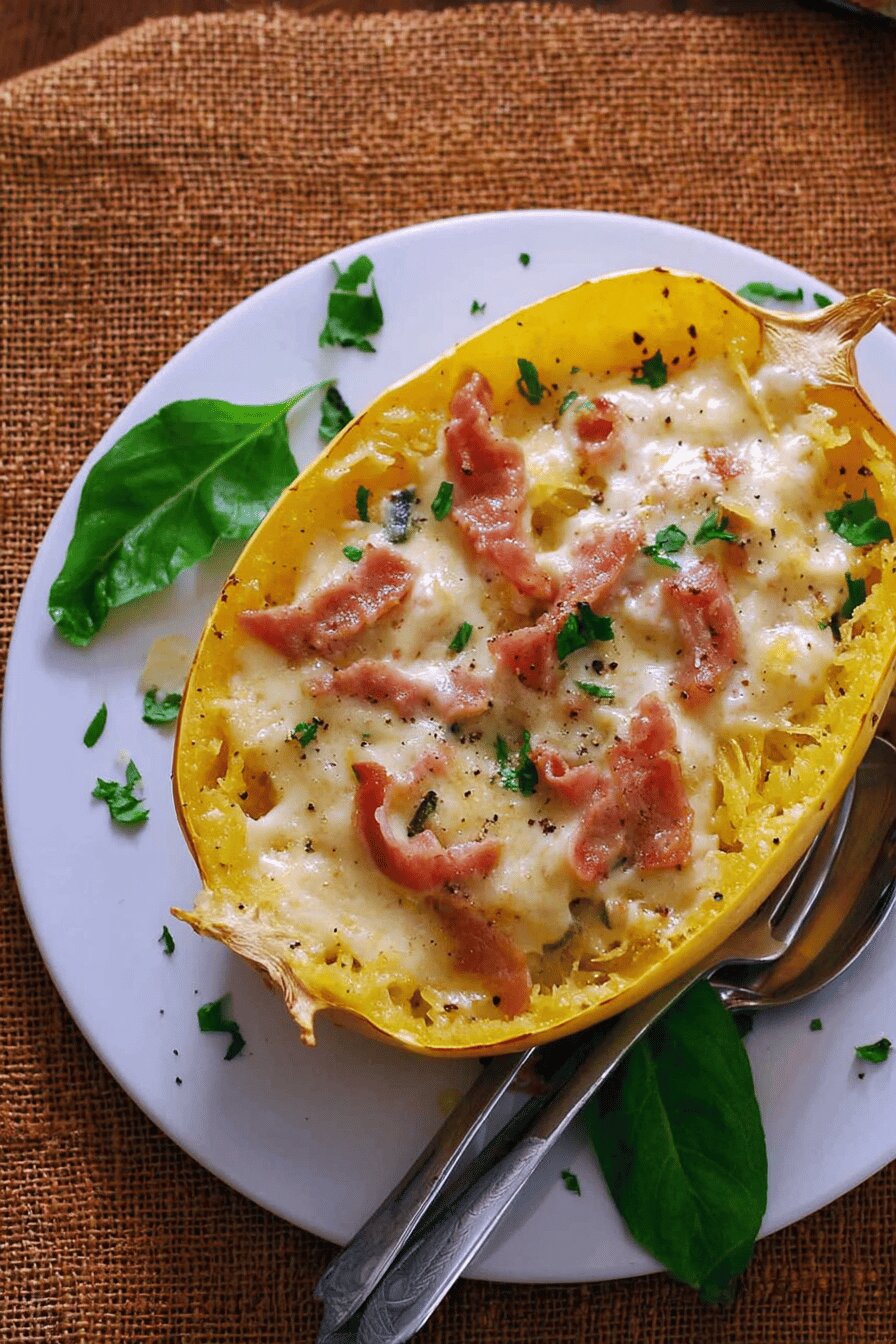 Abóbora espaguete assada, com molho cremoso de queijo brie, cogumelos salteados e presunto crocante. Usa farinha de amêndoas no roux pra um toque diferente, substituindo a tradicional farinha de trigo. Passo a passo detalhado pra extrair fios perfeitos da abóbora, roux clarificado que evita grumos, e técnica pro presunto ficar crocante sem ressecar. Temperatura do forno mantida, mas tempo ajustado pra ponto ideal da abóbora. Finaliza com salsa fresca e parmesão ralado. Receita rica em textura, aroma e contraste de sabores, recomendada para quem já sofria pra fazer molho branco perfeito ou nunca testou abóbora espaguete. Dá pra improvisar com tofu defumado no lugar do presunto, pro vegano que insiste em algo mais encorpado.