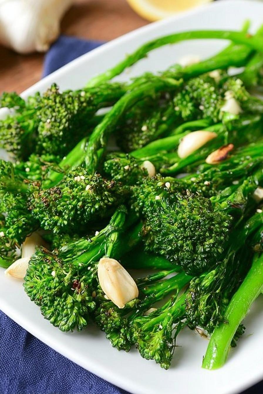 Broccolini salteado com alho e óleo de oliva, cozido até atingir textura crocante sem abrir mão do toque macio no talo. Troque o brócolis tradicional pelo broccolini para um visual mais delicado e sabor semelhante; substitua o alho por chalotas para sabor mais suave. Sal kosher e pimenta equilibram; água ajuda no cozimento ao vapor, mantendo crocância. Ideal para acompanhamento rápido, fácil e cheio de vida no prato. Atenção ao tempo e aspecto — verde vibrante e talo macio são o ponto certo. Prático para o dia a dia, evita broccolini murchando ou queimando.