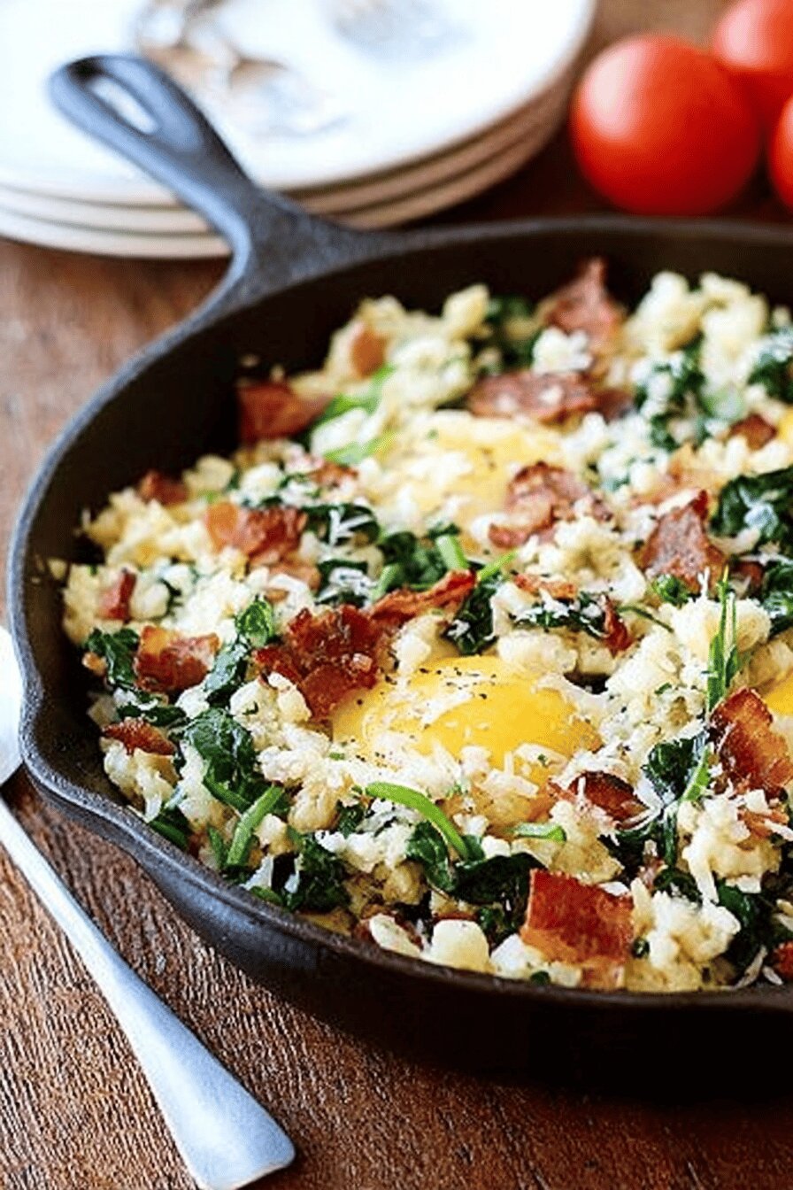 No calor do fogão, esta mistura simples transforma a rotina matinal. Batatas ralas que grudam ligeiramente na frigideira, formando uma camada dourada, ovos que começam cremosos, mas firmam com a adição do espinafre e o toque salgadinho do bacon. Os aromas que se soltam fazem qualquer cozinha parecer um ponto de encontro. Meu truque? Nunca acelerar a fervura da frigideira nem mexer cedo demais; o silêncio do óleo quente diz muito antes do relógio. E a troca do bacon por linguiça calabresa no fim de semana é minha surpresa para convidados mais descontraídos.