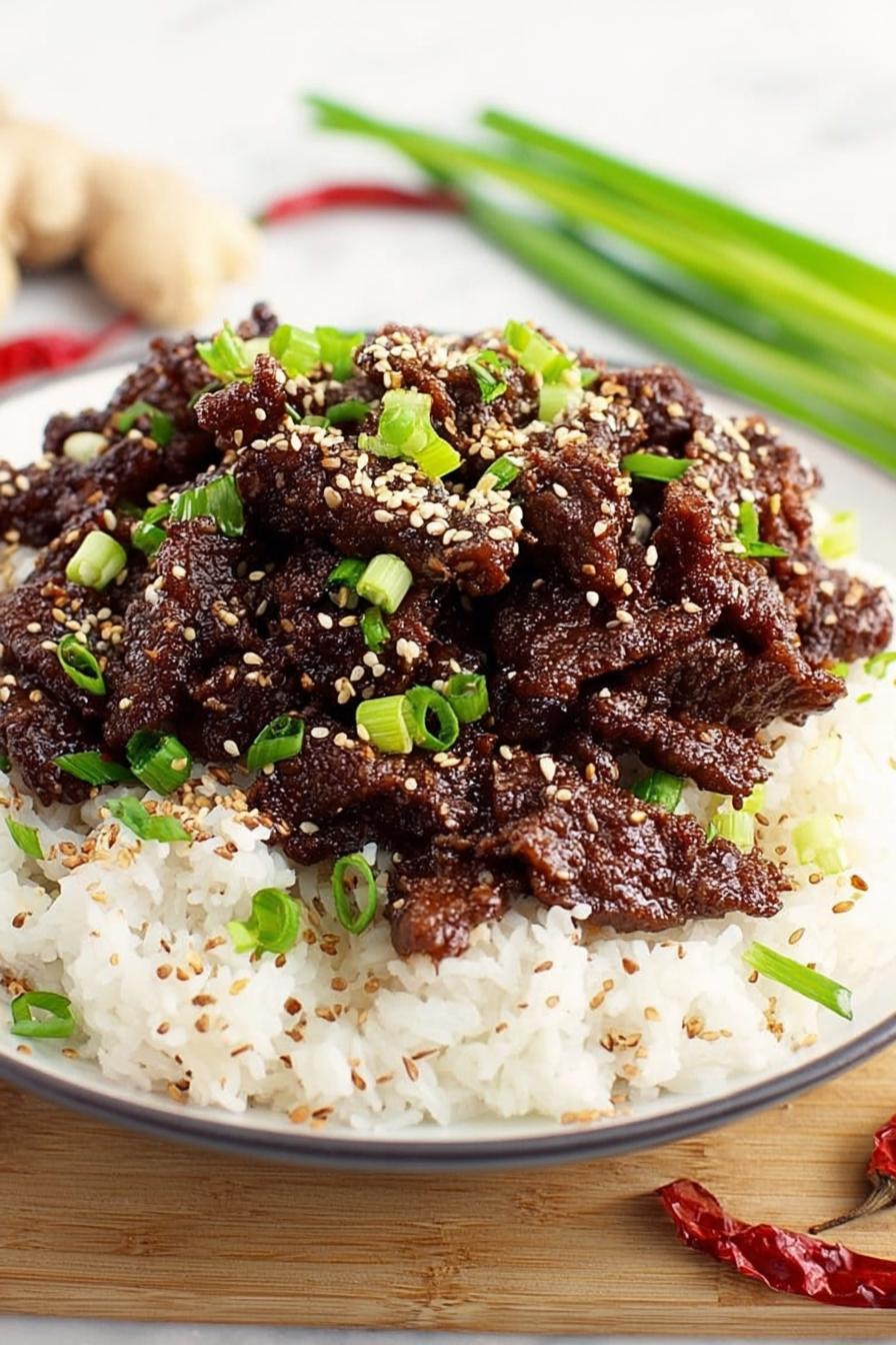 Tiras finas de carne bovina empanadas em amido de milho, fritas em óleo quente, envoltas numa mistura agridoce com gengibre, alho, e um toque de óleo de gergelim. A receita exige atenção à textura da carne e ao ponto da fritura para garantir crocância sem ressecar. O molho combina sabores doce, ácido e picante, usando pimenta vermelha em flocos e três tipos de molho de soja. Finaliza com cebolinha verde e sementes de gergelim tostadas para um aroma final. Serve quatro porções com ingredientes facilmente substituíveis e técnicas adaptáveis à cozinha caseira.