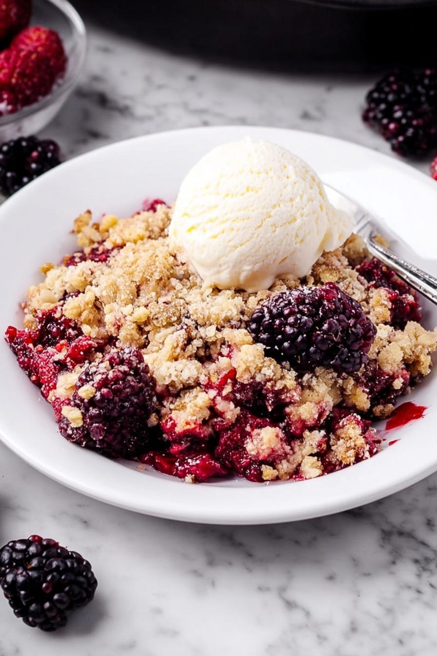 A ordem da massa antes da fruta economiza bagunça na cozinha e facilita medir a quantidade certa de cada camada. Misturar com garfo é mais prático e prende menos farinha nas mãos, além de distribuir a gordura melhor. Na fruta, respeite uma mexida delicada para evitar esfarelar as amoras antes de assar – queremos elas inteiras, soltas, macias e suculentas. O forno pode variar muito; acompanhe a coloração da crosta e o borbulhar nas bordas para entender que está pronta. Se a farofa dourar demais, use o alumínio cobrindo só a parte de cima depois que o borbulhar começar. Isso salva vários minutos e evita estragos. Depois de fora do forno, dar um respiro ajuda a concentrar os sabores e firmar o caldo de amora para não virar sopa no prato. O acompanhamento faz a diferença — sorvete de creme é básico, mas goiabada derretida entra no jogo para um toque brasileiro.