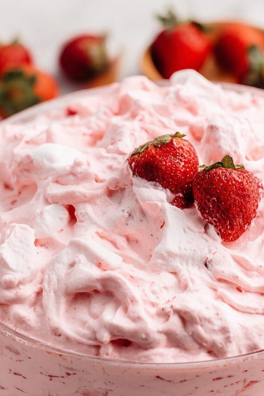 Combinação inesperada de gelatina de morango e pudim instantâneo, misturada com frutas frescas e marshmallows que dão textura e doçura. Leve, aerado e com variações que surpreendem o paladar. Receita prática que exige atenção nos tempos de resfriamento para atingir consistência ideal, com truques para substituir ingredientes e evitar erros comuns como gelatina dissolvida incorretamente ou mistura empelotada.