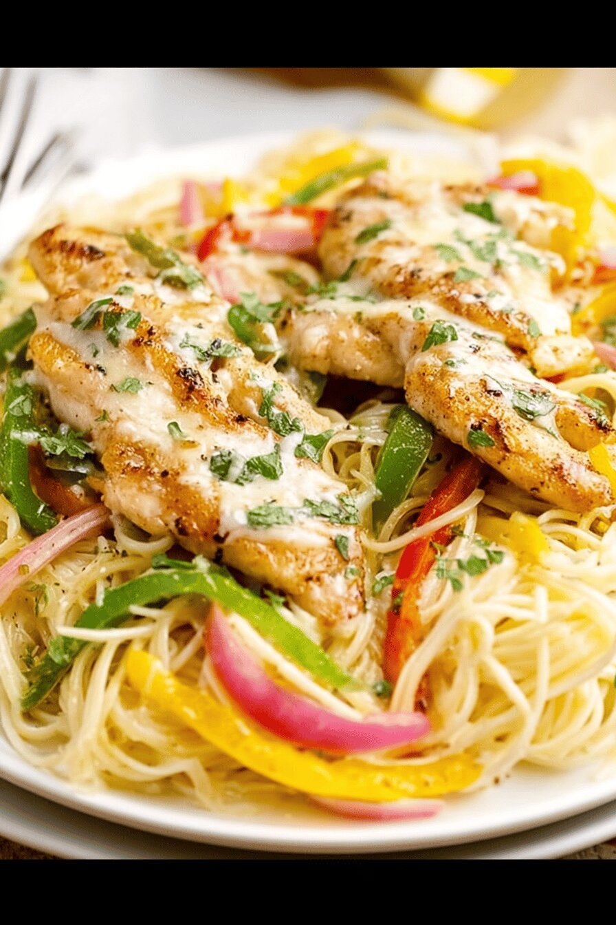 Filés de frango empanados levemente e dourados, servidos com espaguete fino envolto em molho cremoso de vinho branco, limão e creme de leite. Vegetais coloridos salteados completam o prato trazendo textura e sabor vibrante. O segredo está no ponto do frango, molho sem grumos e vegetais no ponto certo, garantindo um equilíbrio entre cremosidade e frescor. Receita adaptada para o paladar brasileiro, com substituições e ajustes finos para resultados mais confiáveis e prática na cozinha.