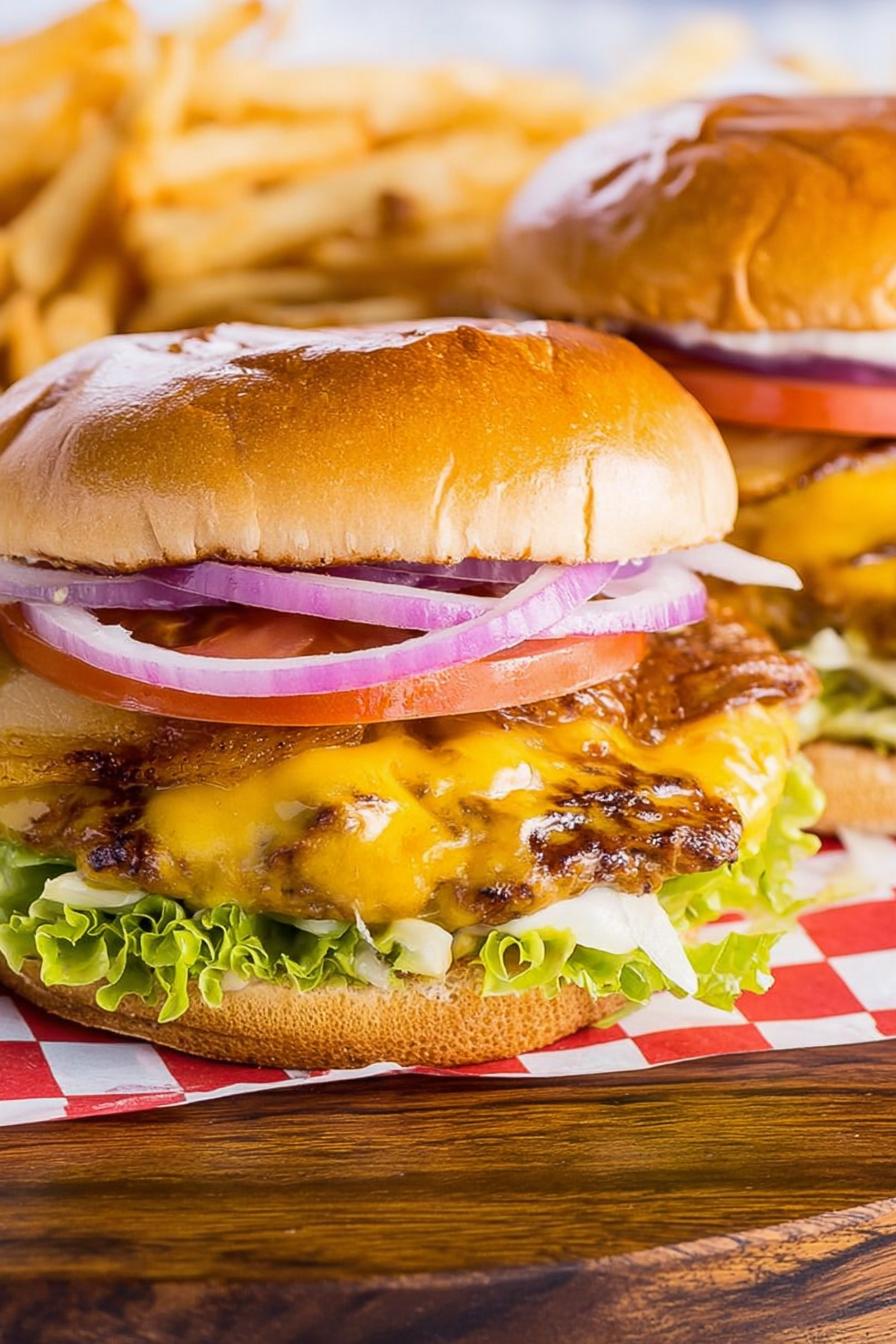 Um hambúrguer smash feito na chapa quente, com cebola refogada e queijo derretido. A técnica de amassar o bolinho de carne cria bordas crocantes e textura macia por dentro. Pão amanteigado tostado na chapa para absorver todo sabor da gordura. Receita adaptada com toque de páprica defumada no blend de carne, trazendo aroma e um leve sabor defumado. Perfeito para quem curte hambúrguer artesanal rápido, com sabor intenso, textura marcante e aquele toque visual das bordas queimadinhas. Ideal para preparar em chapa ou frigideira grande, rápido e com controle total do ponto.
