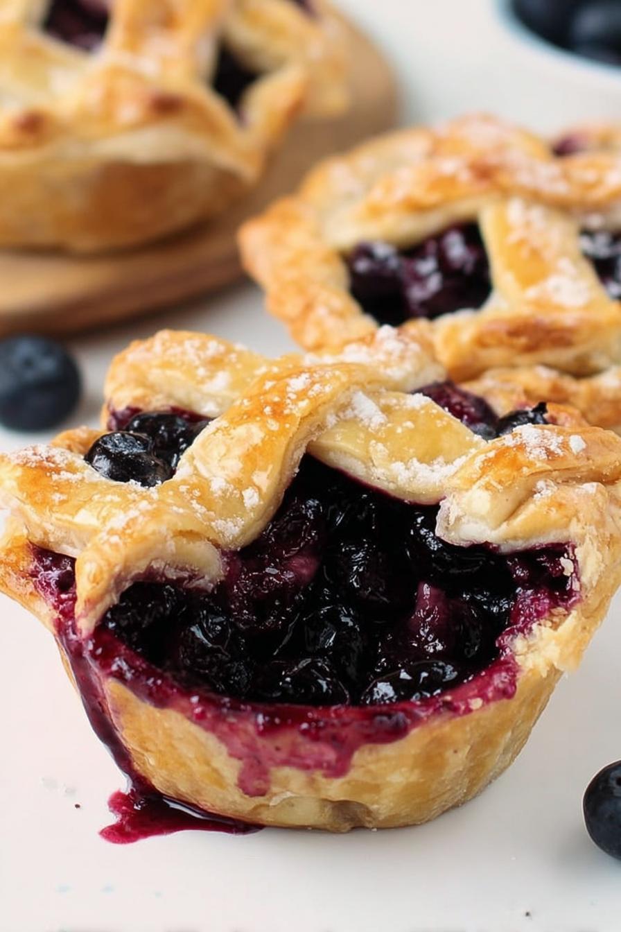 Pequenas tortinhas de mirtilo provocam aquele misto de nostalgia e conforto. Já mexendo na cozinha há anos, aprendi a entender cada passo – desde o brilho da gema àquele estalo da massa ao ser mordida. Mirtilos frescos trazem um aroma azedinho que, junto à canela e noz-moscada, evocam uma lembrança de tardes uteis na cozinha da minha avó. O segredo está no equilíbrio do recheio; doce, mas com acidez; textura cremosa, mas com firmeza. Moldar a massa em pequenas formas redondas garante porções individuais, práticas e charmosas. O banho de ovo e o toque de açúcar cristal são o que transforma esse doce de simples em uma joia dourada, crocante e borbulhante. A paciência para esperar o recheio estourar discretamente pelas frestas é o sinal mais confiável que elas estão prontinhas, ansiosas para serem devoradas.