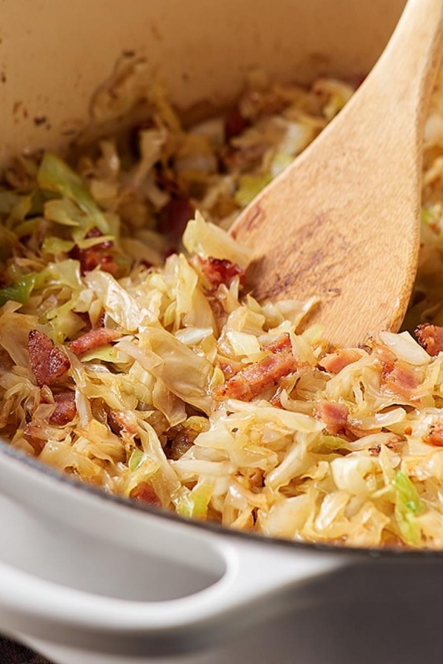 - 💡 Se não tiver repolho fresco, use congelado. Diminua o tempo de cozimento. Repolho congelado solta mais água facilmente.
